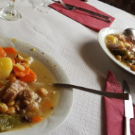 “ Nos atendieron enseguida, servicio rápido y amable. Pedimos cocido y risotto buenísimo. Y de segundo presa y muslo de pollo,muy bueno. Y de postre natillas y calostro casero y muy bueno. Calidad -precio perfecta . Lo recomiendo 100% ”